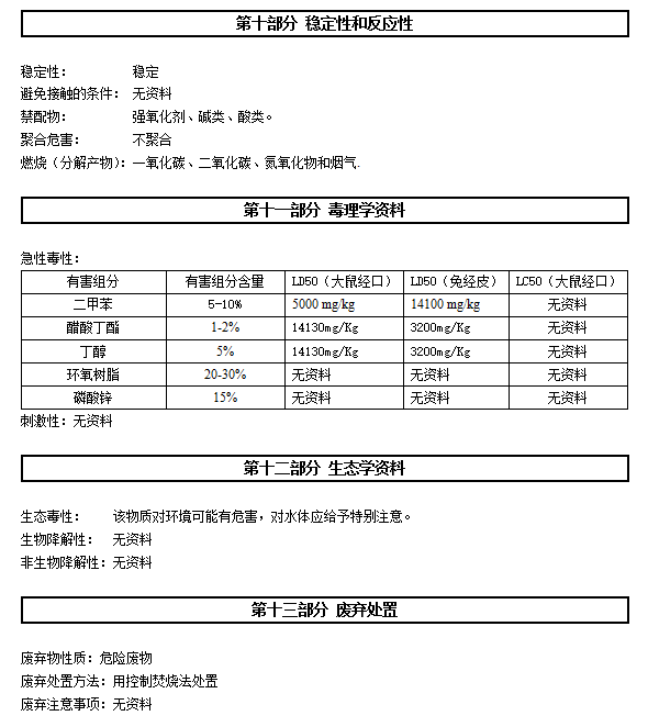 产品特性 良好的韧性;优异的基底附着力;优异的耐腐蚀性能。