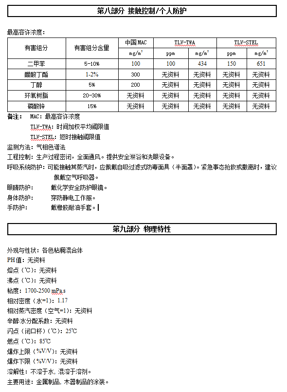 钢结构和潮湿处的防锈保护,对底材二次磷化,具有良好的老化重涂性能