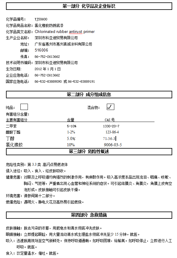 产品名称 氯化橡胶防锈底漆