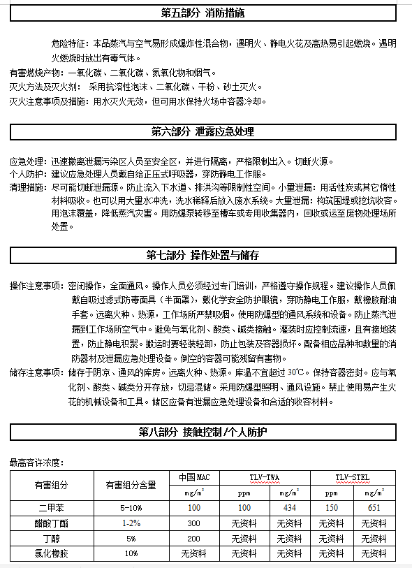 警告:会引起眼睛和皮肤的刺激。反应的蒸汽可能会引起过敏人群的呼吸道刺激。可能会引起皮肤过敏反应。避免呼吸蒸汽。请勿触及眼睛、皮肤。要使用眼、耳、皮肤的防护用具,使用合适的面具,以避免潜在的呼吸道刺激。使用后用清水彻底的清洗皮肤。如有不适请咨询医生。衣物再次使用前要洗涤。如果没有呼吸要进行人工呼吸,最好嘴对嘴,并请医生处理。灼伤:放热反应会使产品变热,超出正常水平。在混合后要小心处理。使用手套。急救:如果不慎接触了眼睛,立即用清水冲洗至少15分钟,并脱去污染的衣鞋,用肥皂清洗接触后的皮肤。